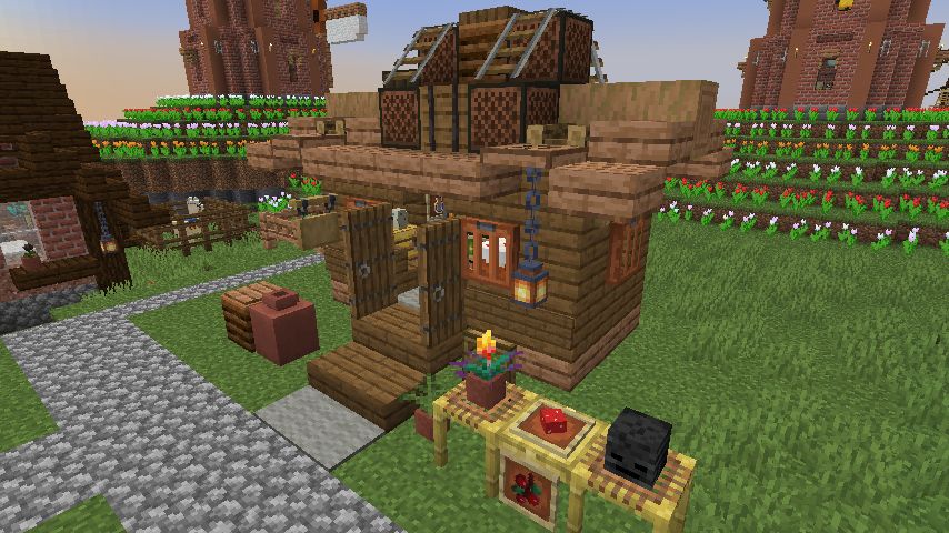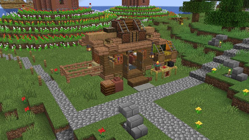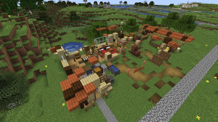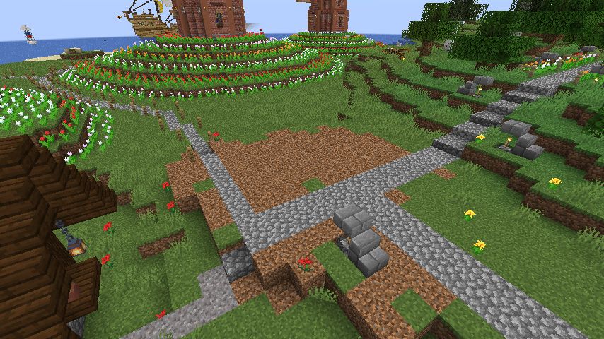 メインストリートから脇道を伸ばしてそこに建てます。うちのワールド基準だとやや大きめ。