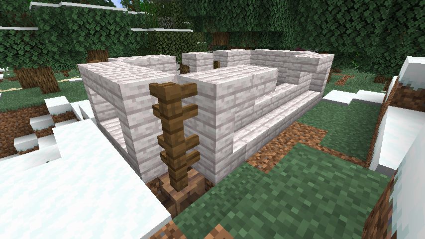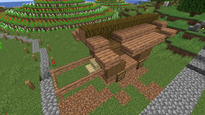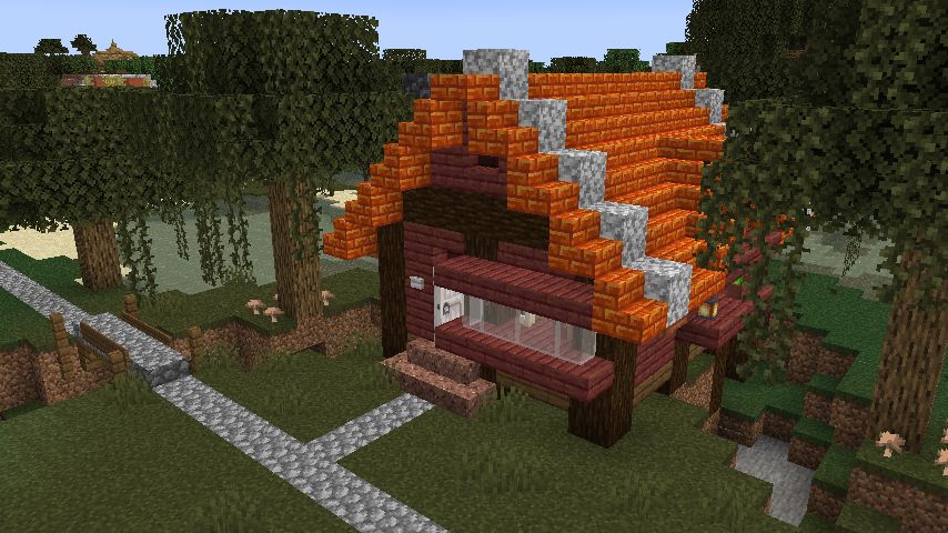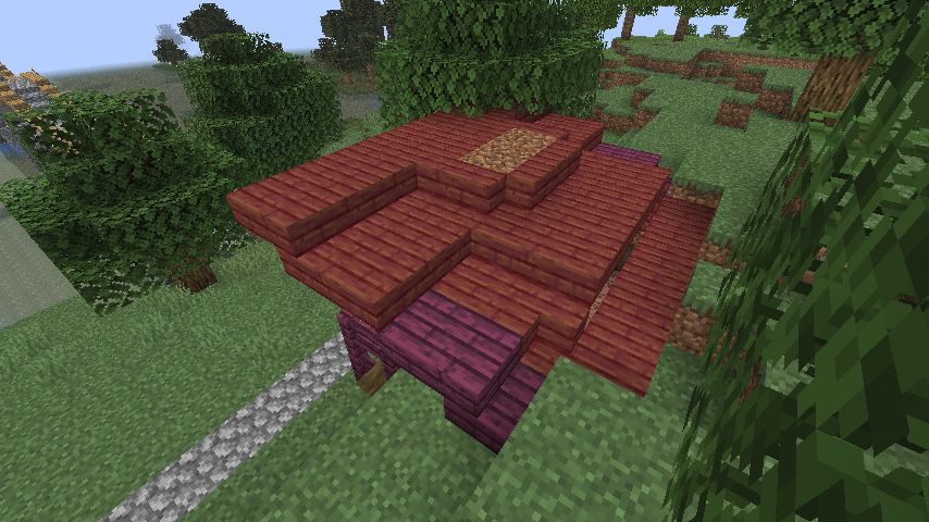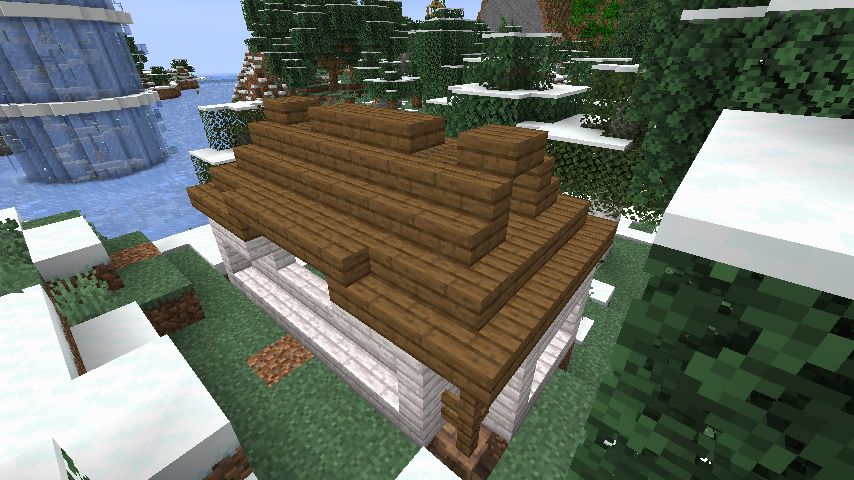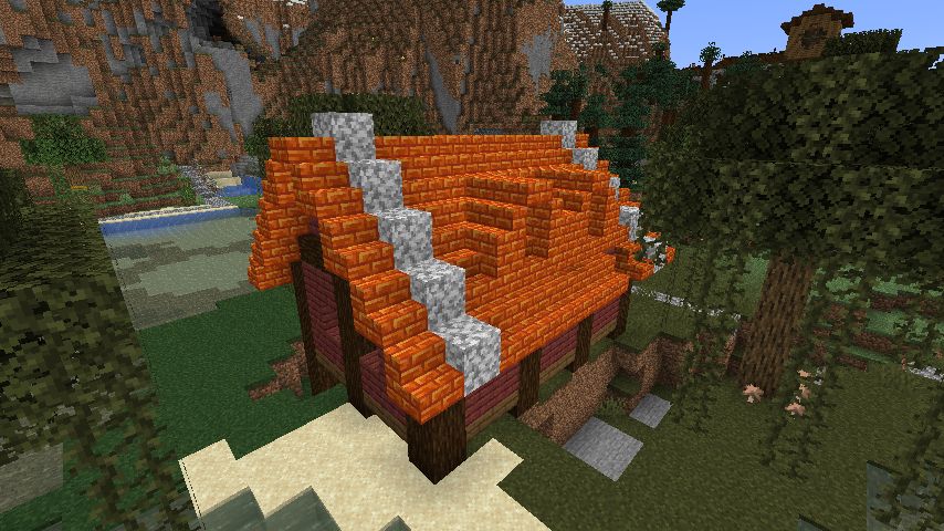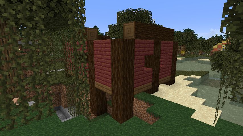 ちなみにジャングルの木材を3段目に使っているのは、屋根との間に凹が欲しかった為です。