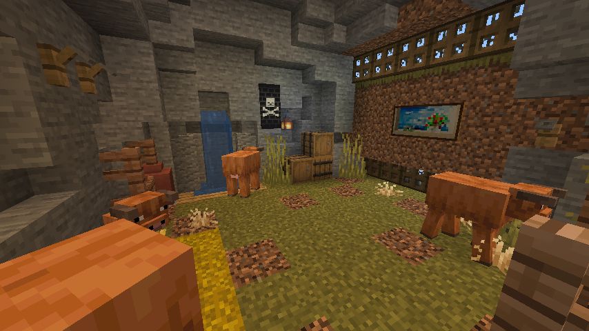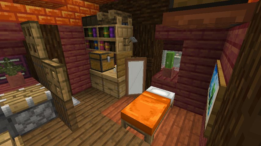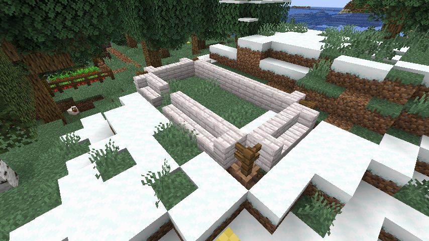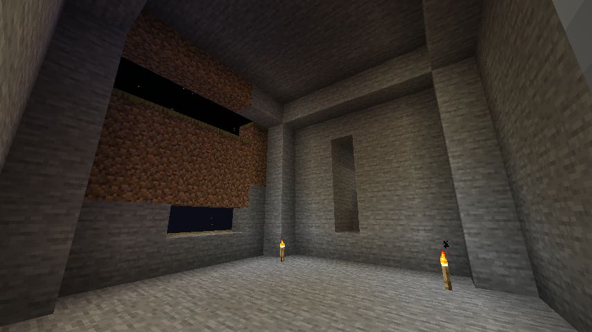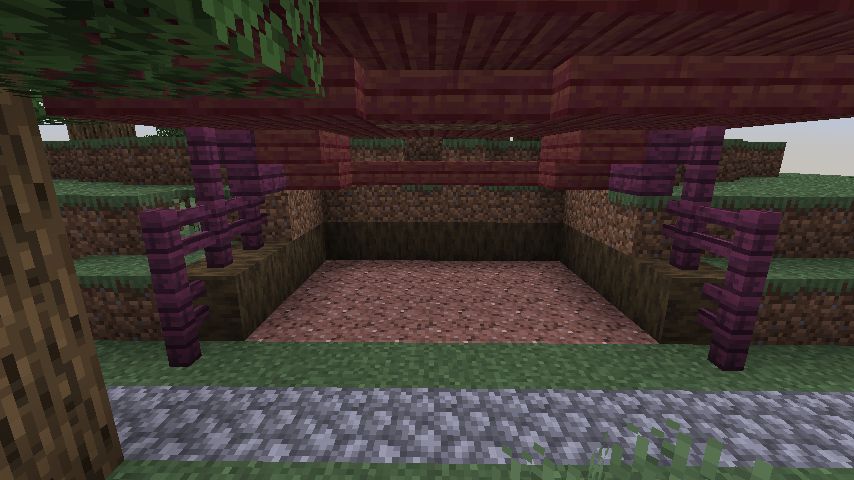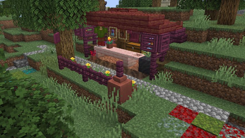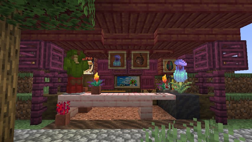 まず、小さな丘を切り取り、敷地を確保しました。次に床と壁を設置し、床材の色を変えた花崗岩を使用しました。屋根は真紅に近いマングローブで覆いました。内装についてはスニッファーグッズを配置し、初めて使用した棚の設置に苦労しました。