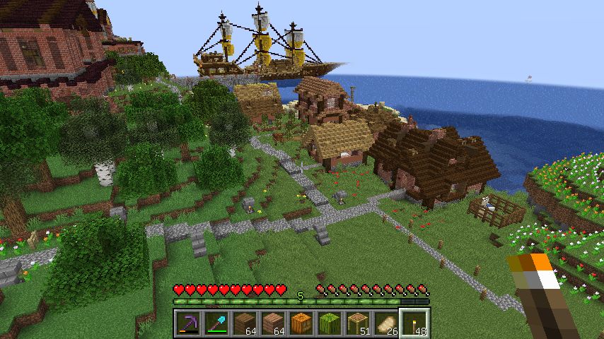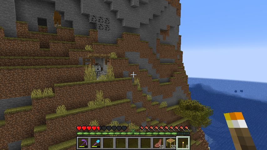 たぶんエンダーマンが砂利を抜いたせいで海水が浸水していました。幸い、こっちは建物の損害はありませんでしたが。