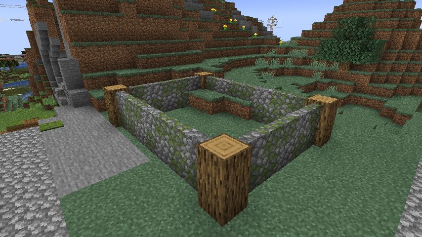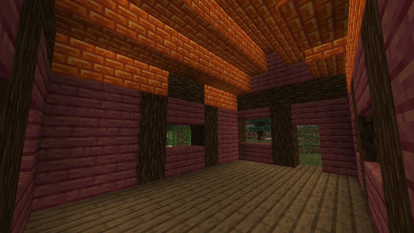 - 土台から始め、壁は普通のオーク木材で構築。