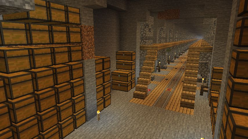 遥か昔、まだマイナスY座標が無かった時代に作ったブランチマイニング場をすべて掘り終えました。