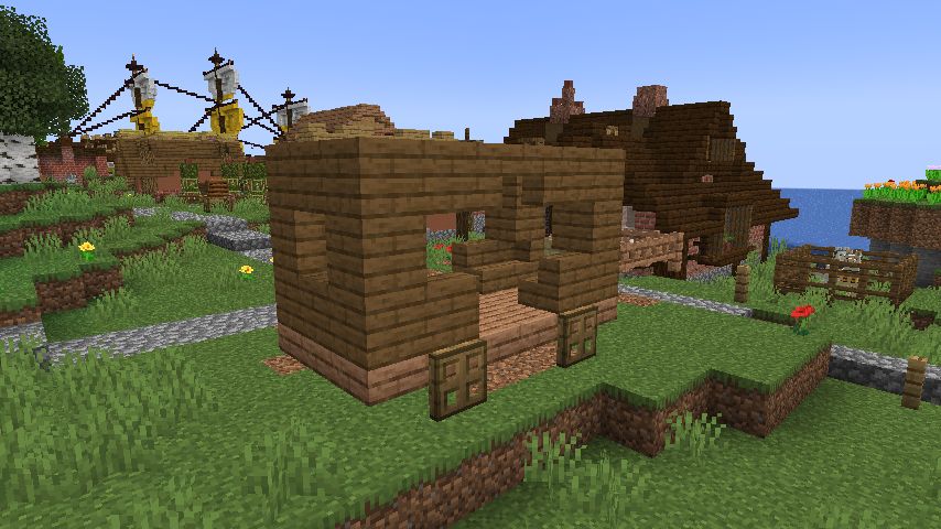 本記事は、ゲーム「マインクラフト」での移動販売車作成について述べています。記事内では、NPC村区内に食品を扱う店が不足していることから、移動販売車の導入を検討しています。