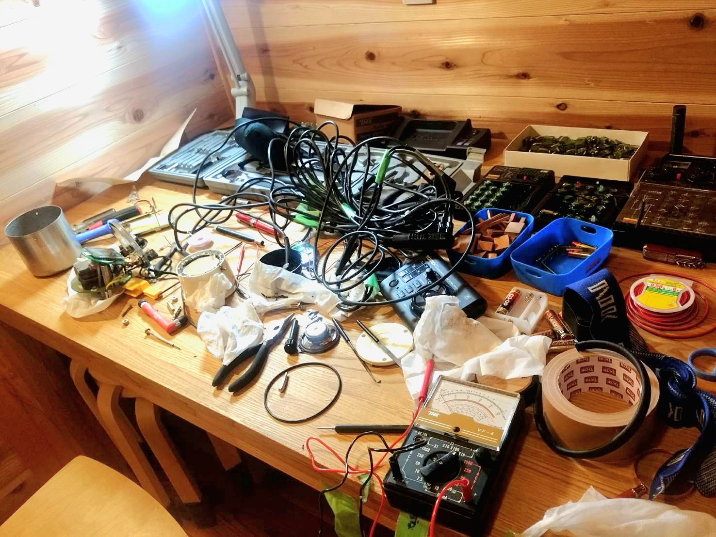 写真左:「Sphebot」の部品を製作している時の様子