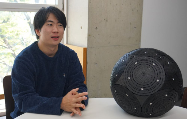 幼少期から機械に関心を持ち、現在は先進理工学研究科の澤田秀之研究室 でロボット開発に取り組む天野創太さん。災害現場や起伏のある地形での探索を想定した、全方位移動可能な球体ロボット「Sphebot(スフィボット)」を発表し、2025年9月に、世界28カ国から2,100件を超える応募が寄せられ、国際的に権威のあるJames Dyson Award(以下JDA)2025で国内最優秀賞を受賞しました。学部生の頃から本格的にロボット開発に携わってきた天野さんに、ロボットに興味を持ったきっかけや製作の裏側、今後の展望などを聞きました。